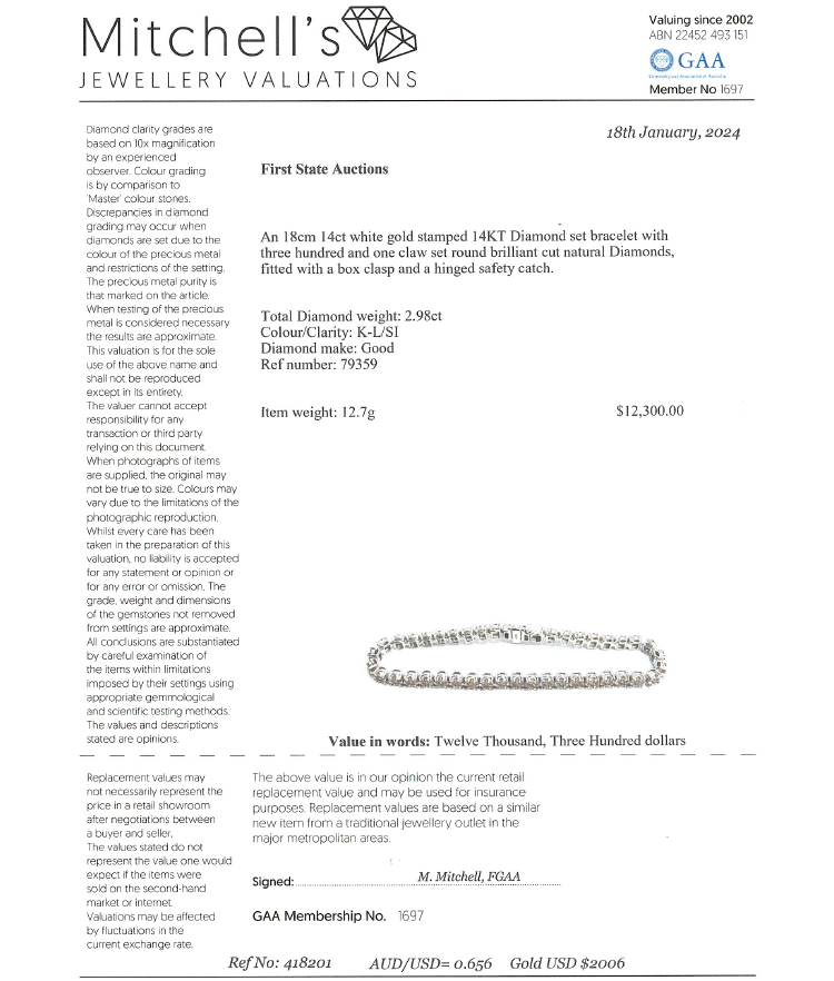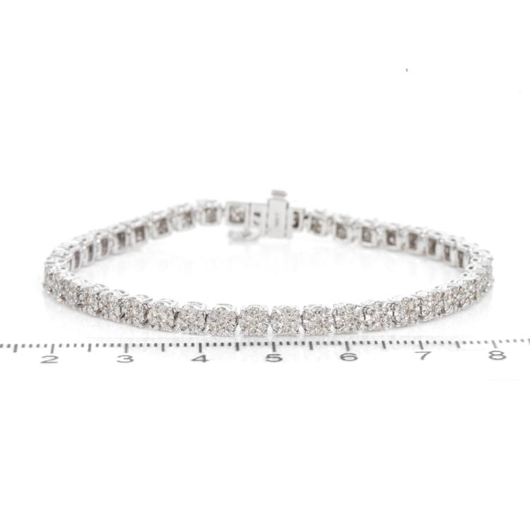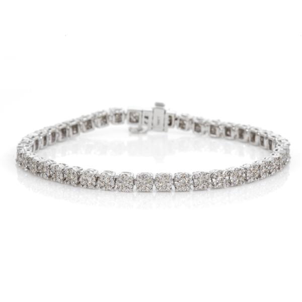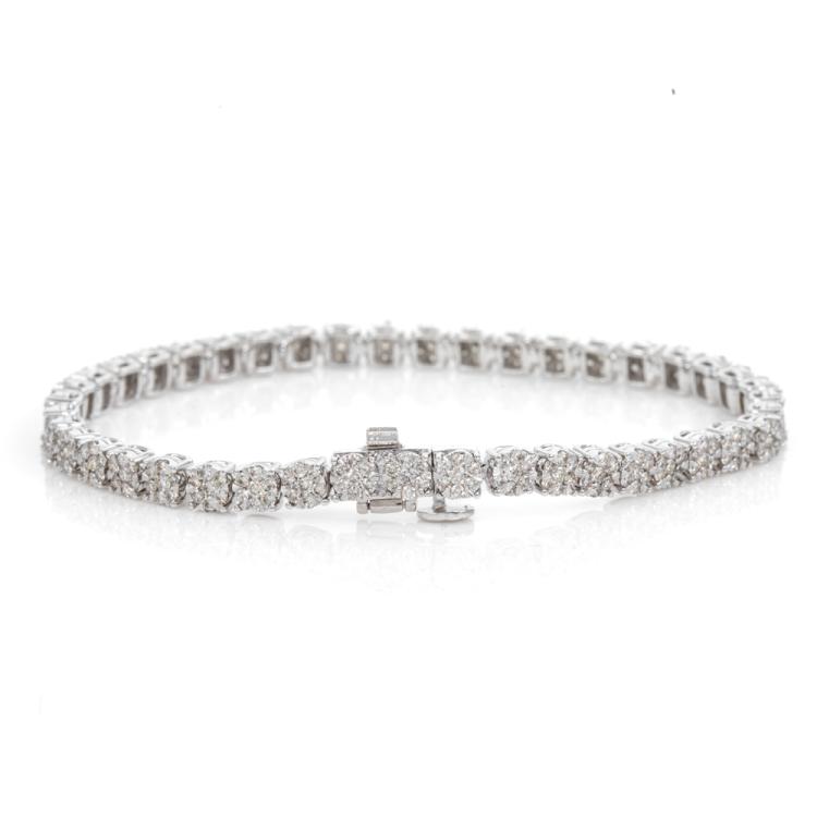 Diamond bracelet with 301 round Natural Diamonds totalling 2.98cts (Estimated grading: K-L SI), invisibly set with 7 Diamonds in each link. 14ct white gold. Length: 18cm. Weight: 12.7g. With Valuation Certificate #418201. (New)