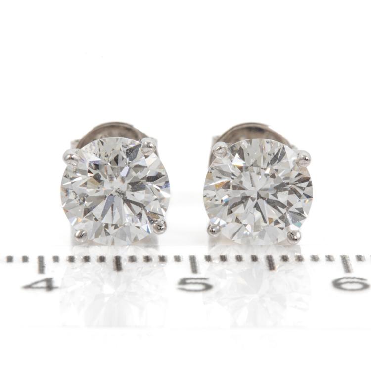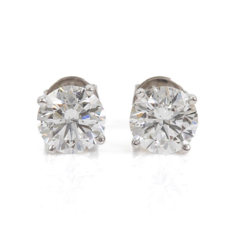 Diamond studs with 2 round brilliant cut natural Diamonds totalling 3.02ct (with GIA reports graded as H SI2, #6471199956, 7466697830). 18ct white gold. Weight: 2.7g (New)