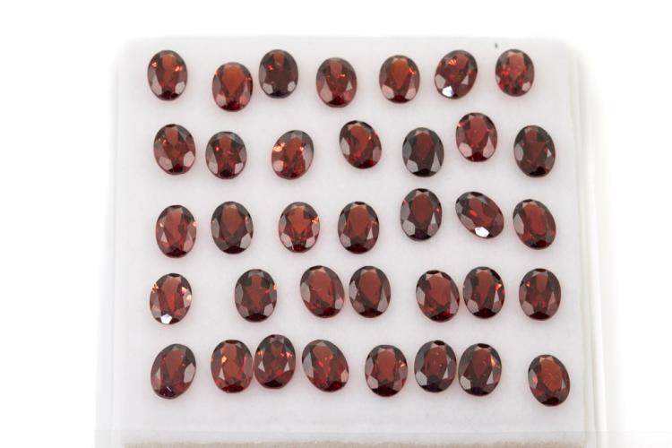 A loose parcel of 36 oval shape Garnets totalling 32.10cts. Measuring approximately 7 x 5mm. (As New)