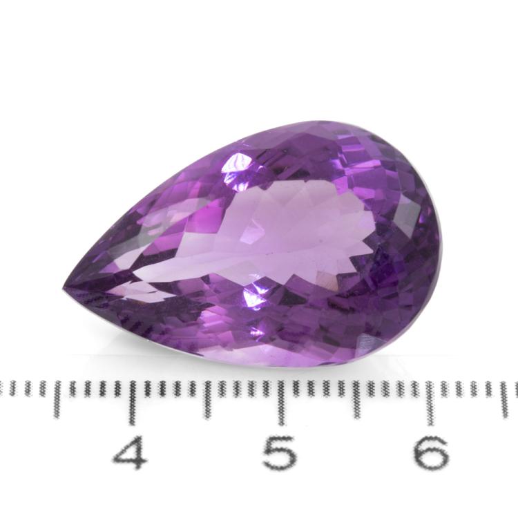 Loose pear shape Natural Amethyst of 32.58ct. Approximate dimensions: 26.0 x 16.7 x 13.4mm. (New)