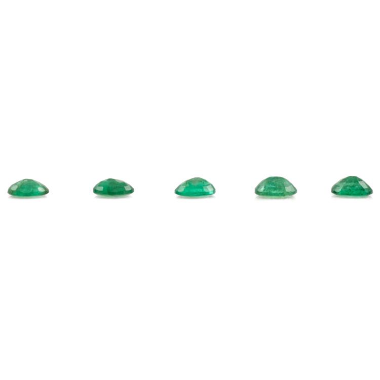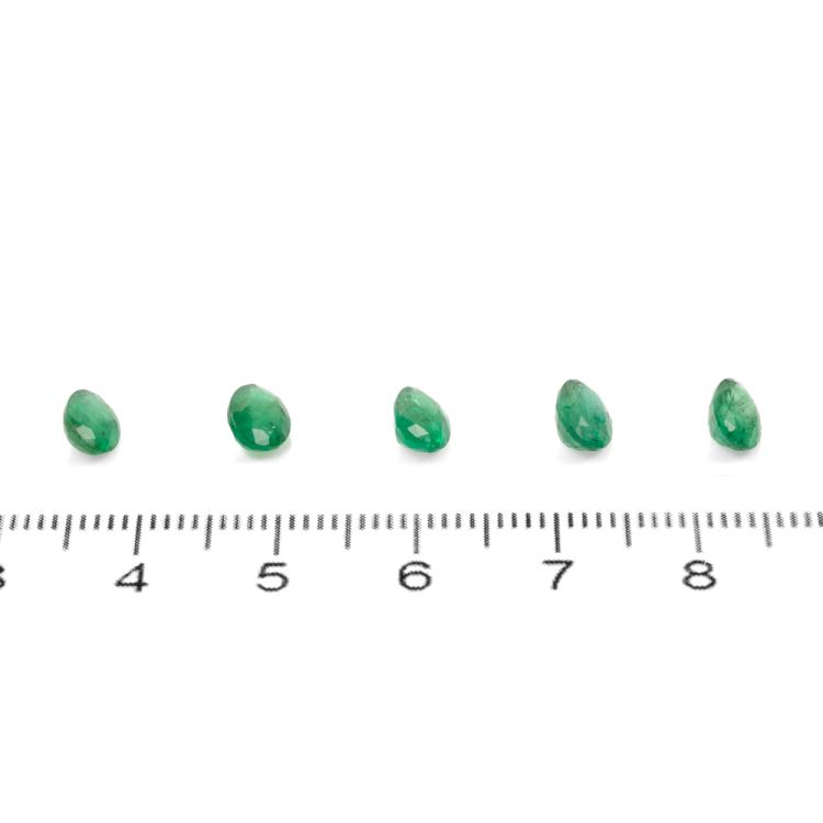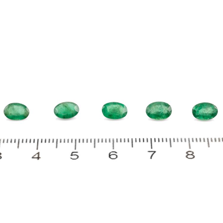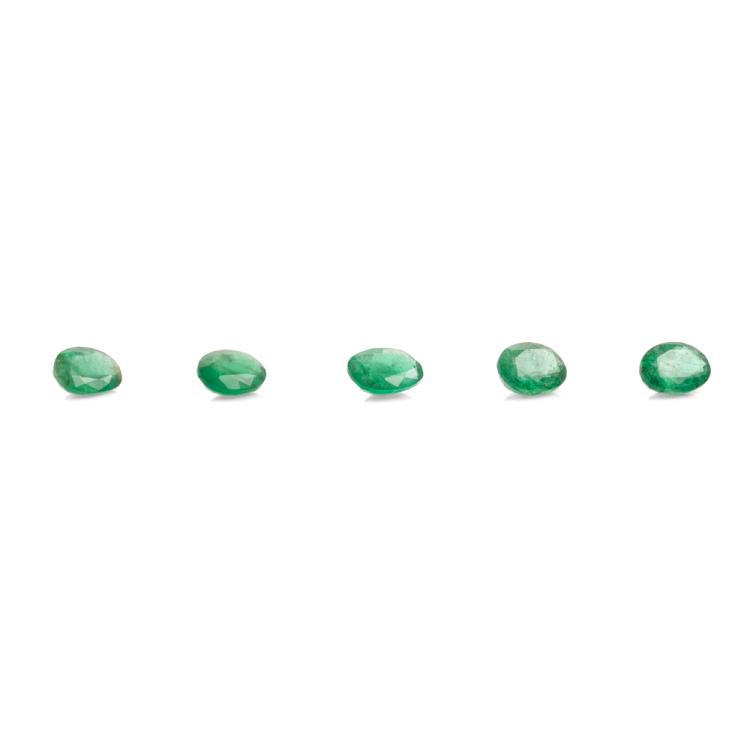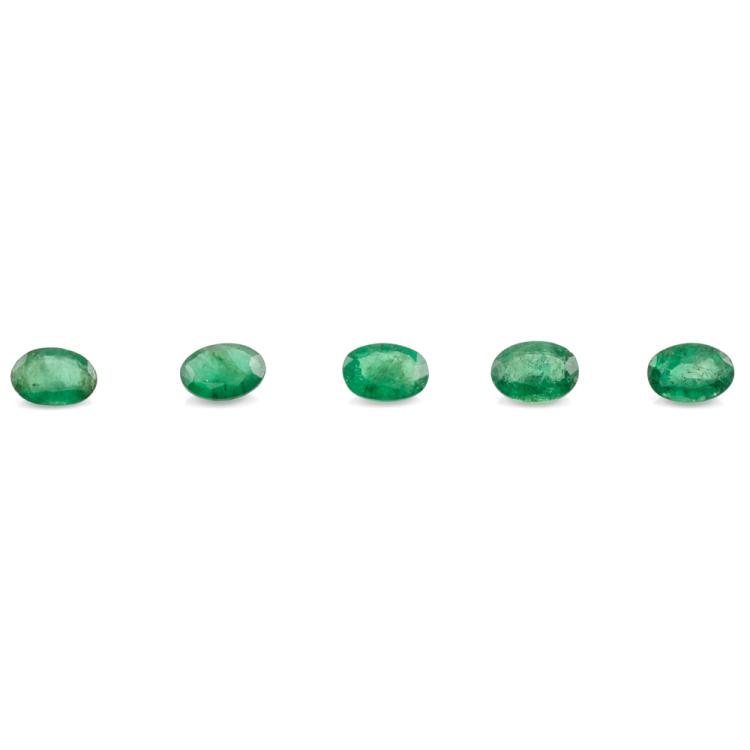 A loose parcel of five oval shape Natural Emeralds totalling 3.48cts. Size: 7.0mm x 5.08 - 7.1mm x 5.1mm. (Pre-owned)^