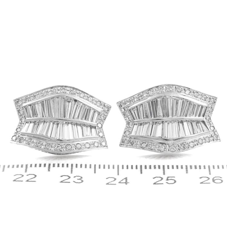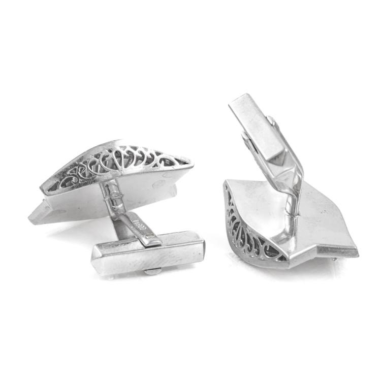 Diamond cufflinks with round & baguette cut Natural Diamonds totalling 3.54cts (Estimated grading: G-H SI). Platinum 900. Weight: 20.0g. With Valuation Certificate #418378. (Pre-owned)
