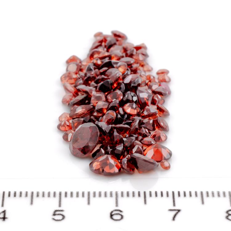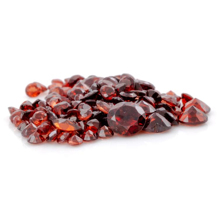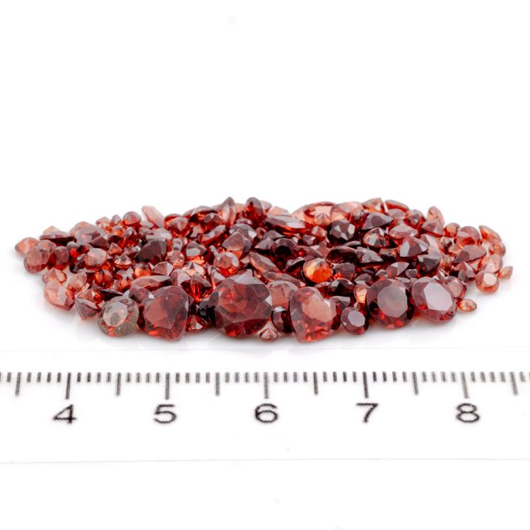A loose parcel of 270 round, heart shape and marquise cut red Natural Garnet totalling 36.65ct. (As new)^