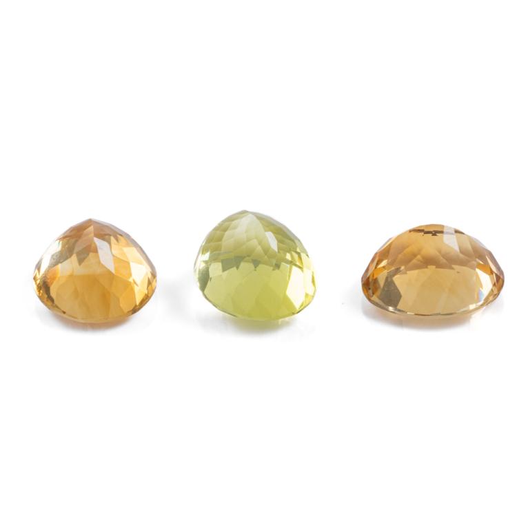 3 Loose gemstones totalling 41.29cts. 1 oval cut Lemon Quartz of 16.08cts (approx. size: 17.1mm x 14.2mm x 11.1mm), and 2 oval shape Citrine totalling 25.21cts (Approx. size; 16.7mm x 14.5mm x 9.8mm). (New)