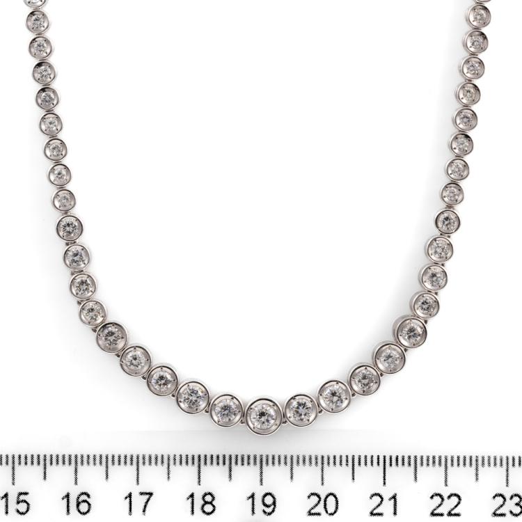 Diamond Tennis necklace with round Natural Diamonds totalling 5.00cts (Estimated grading: H-I SI-P1). Platinum-850. Length: 42cm. Weight: 39.2g. With Certificate #417741. (Pre-owned)