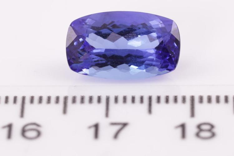 A loose rectangular cushion shape Natural Tanzanite of 5.15ct. Size 13.6 x 8.3 x 5.8mm. (As new)