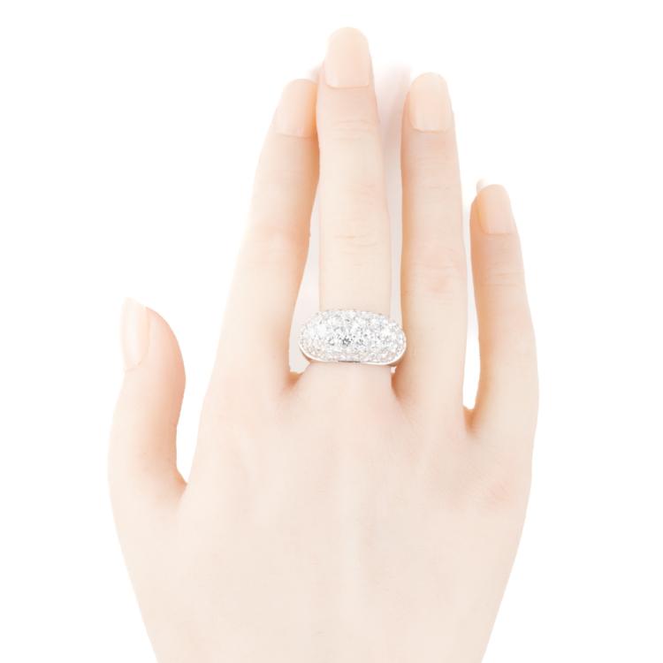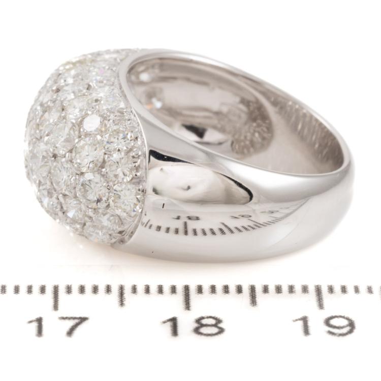 Diamond dress ring with round Natural Diamonds totalling approximately 6.00cts (Estimated grading: G-H VS-SI). 18ct white gold. Ring size: M1/2. Band width: 8.9mm - 5.7mm. Engraved with P Piavam. Weight: 11.9g. With Valuation Certificate #418159. (Pre-owned)