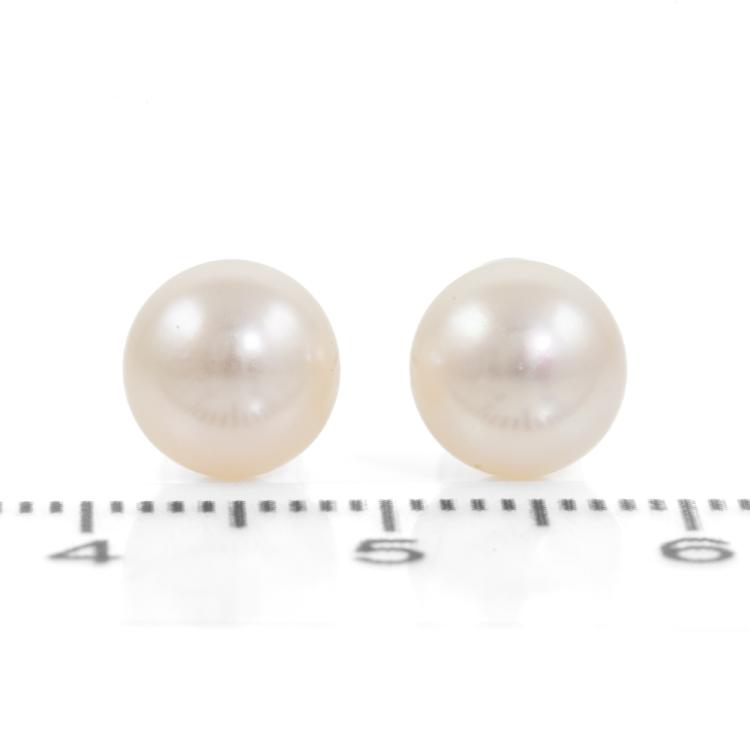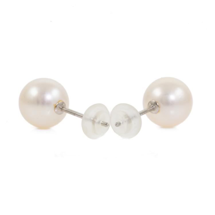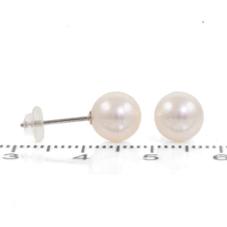 Pearl stud earrings with Akoya Pearl of 7.4mm. Platinum 900 with silicon backs. Weight: 1.5g. (Pre-owned)