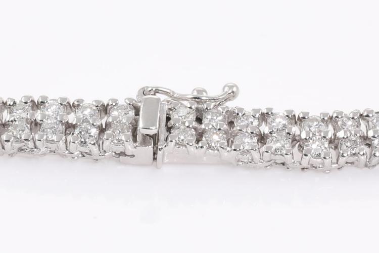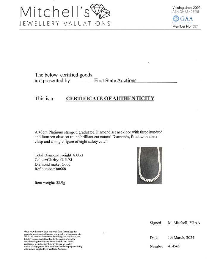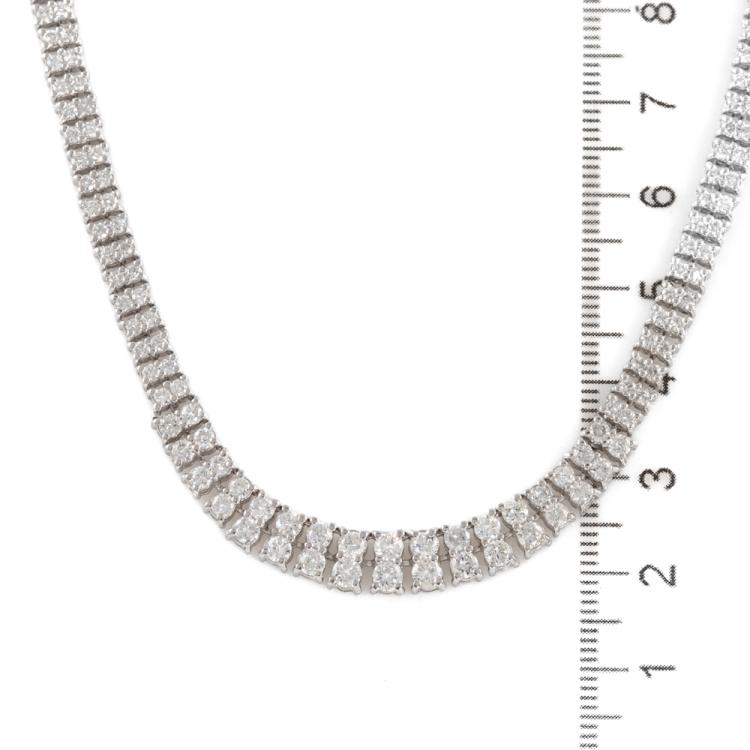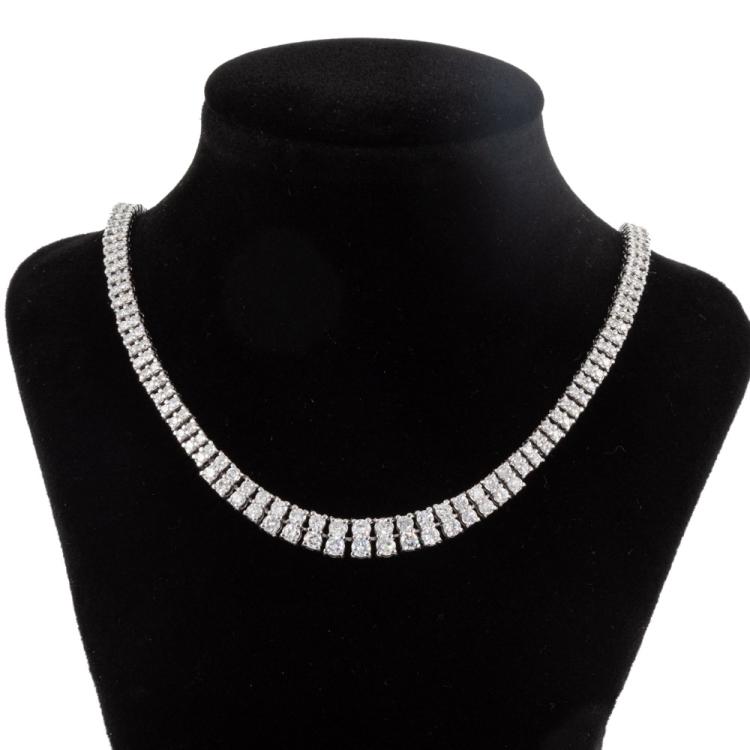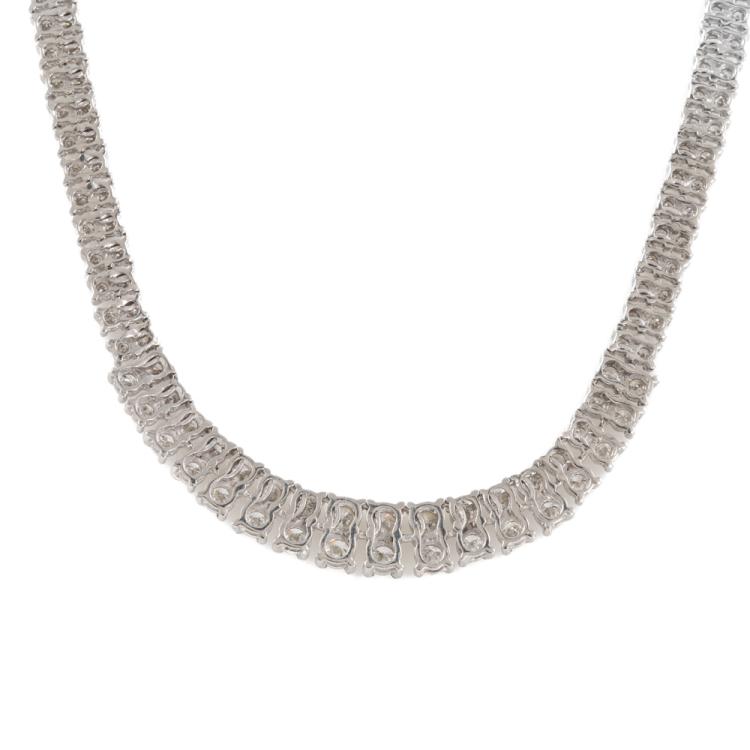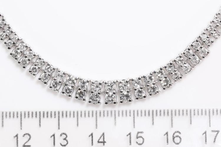Diamond double row necklace with 314 slightly graduated round Natural Diamonds totalling 8.00cts (Estimated grading: G-H SI). Platinum 850. Length: 43cm. Weight: 38.9g. With Certificate #414565. (Pre-owned)