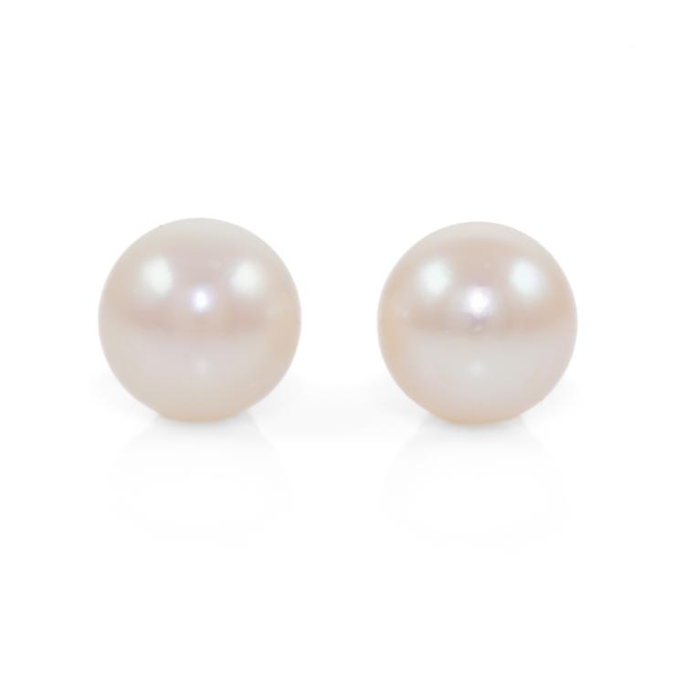 Pearl earrings with Akoya Pearls of 8.2mm and 8.3mm. 14ct white gold with silicon backs. Weight: 1.8g. (Pre-owned) ^