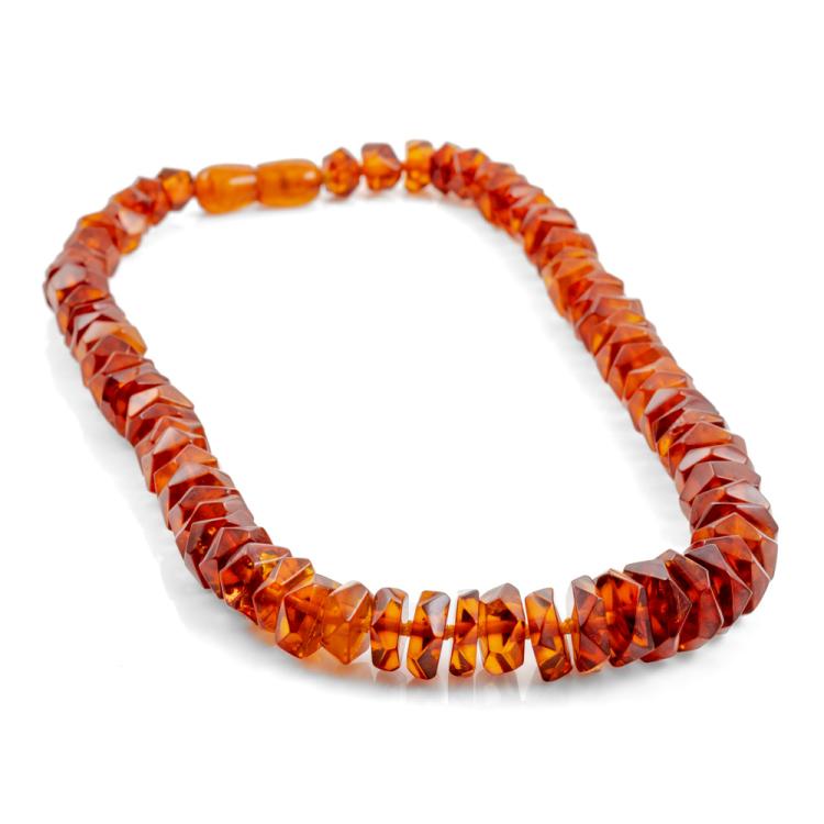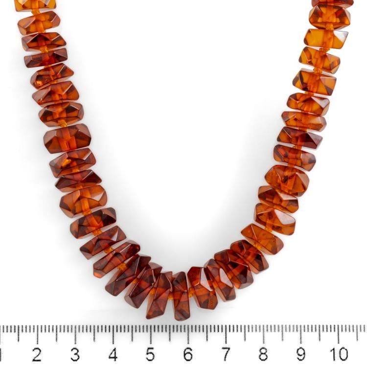 Amber necklace with graduated natural Amber uniform disc-shape beads of size 13mm - 8.3mm. Length: 43.0cm. Weight: 29.5g. (Pre-owned)