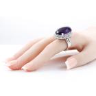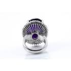 Amethyst and Diamond ring with oval cabochon Amethyst of 60.00ct and round natural Diamonds totalling 1.60cts (Estimated grading: I-J P1). 18ct white gold. Ring size P . Weight: 26.3g. With certificate #416389. (Pre-owned)
