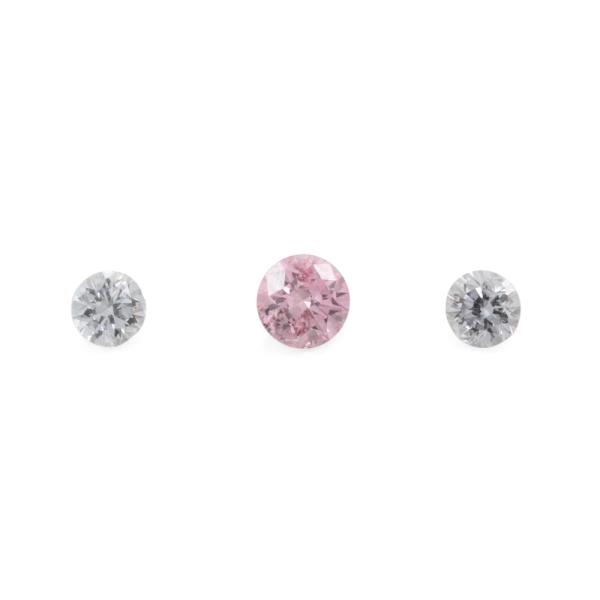 A parcel of 3 loose round brilliant cut Argyle origin Natural Diamonds with 1 round brilliant cut pink Natural Diamond of 0.054ct (with GSL Report graded as Natural Fancy Intense Purplish Pink P2 #AA69033/5, Origin: Argyle Deposit, Western Australian) & 2 round blue Natural Diamonds totalling 0.06cts (1 x 0.032ct With GSL Report graded as Natural Fancy Intense Greyish Blue VS2 # AA69033/6, Origin: Argyle Deposit, Western Australia). (As New)