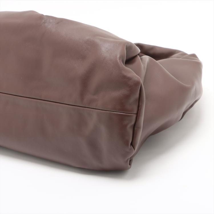 Bottega Veneta The Pouch shoulder bag in a choclate-brown calfskin leather with ruched detailing. Gold-toned hardware, a magnetic fastening secures the opening of the bag, concealing a colour matching leather interior. Approximate dimensions: 36.5cm(L) x 22.5cm(H) x 14cm(D), 14cm handle drop. Accompanied by a Bottega Veneta dust bag. With Entrupy Certificate of Authenticity. (Pre-owned)