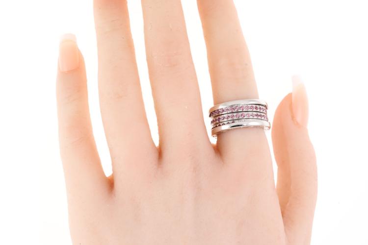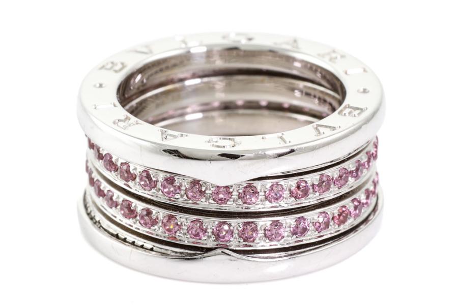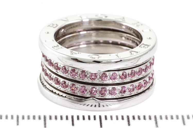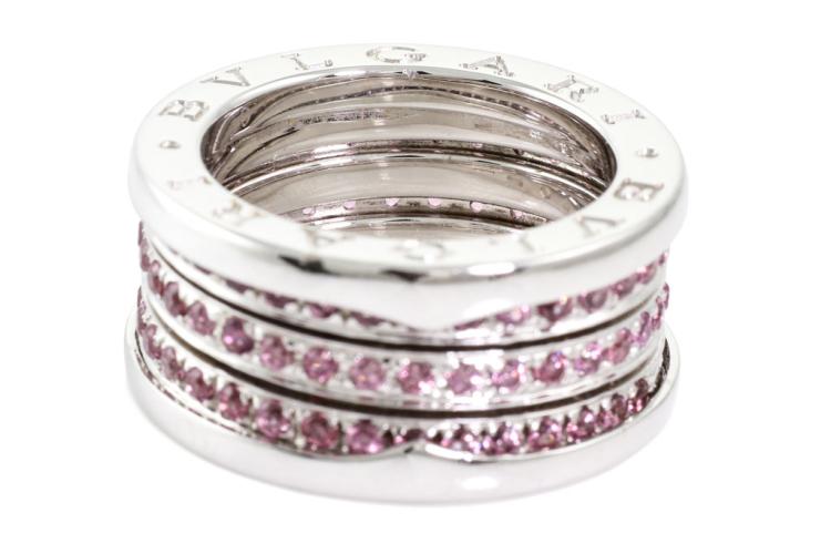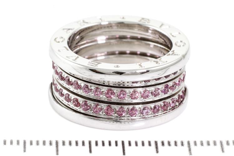 Bvlgari B. Zero full Tourmaline ring with round pink Tourmaline. 18ct white gold. Stamped size 51, K - ring resizing is not recommended. Band Width: 10.7mm. Weight: 13.8g. With Bvlgari box. (Pre-owned)