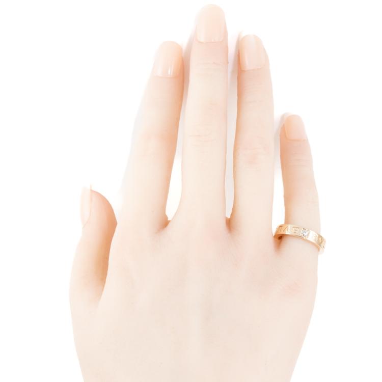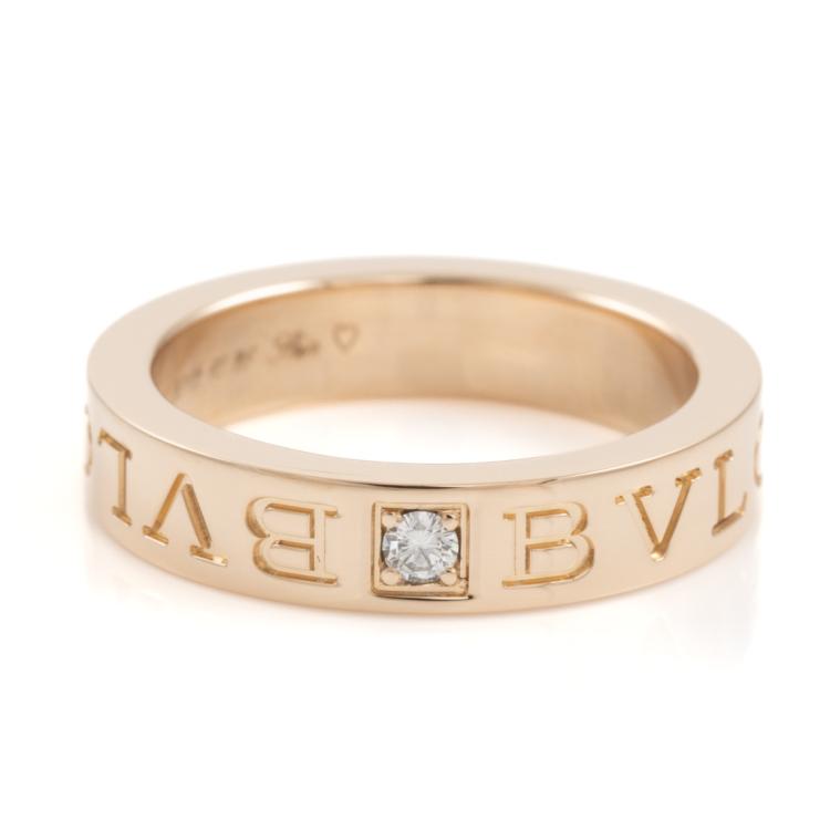 Bvlgari Bvlgari ring with round Natural Diamond of approximately 0.04ct. 18ct rose gold. Ring size I1/2 - ring resizing is not recommended. Width: 4.0mm. Made in Italy. Weight: 6.4g. With engraving "2012.10.26 Shin heart". (Pre-owned)