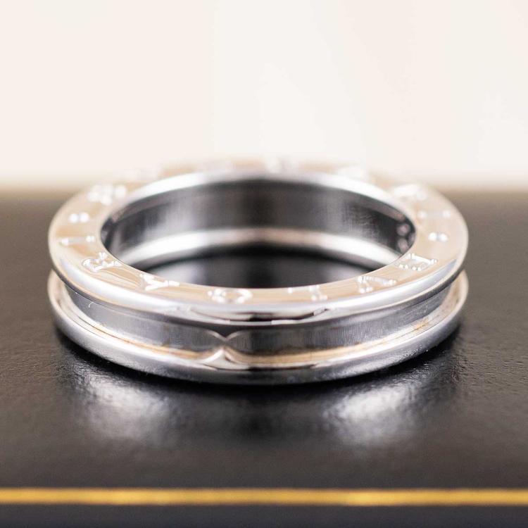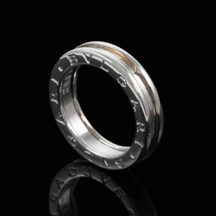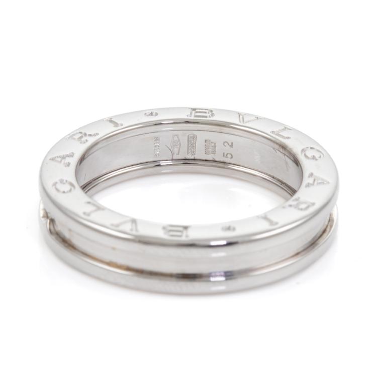 Bvlgari B.Zero1 one band ring. 18ct white gold. Bvlgari stamped size 52, L - ring resizing is not recommended. Band width: 4.8mm. Made in Italy. Weight: 7.3g. (Pre-owned)