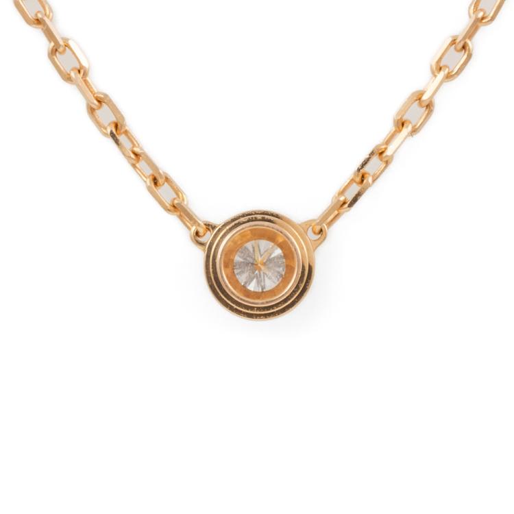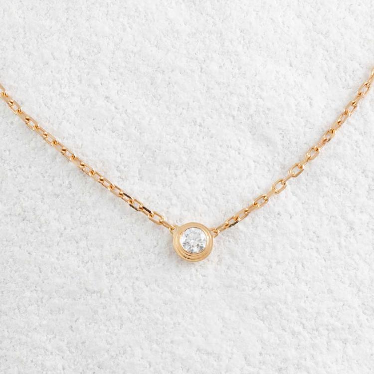 Cartier D'Amour Diamond pendant SM with one natural round Diamond totalling 0.09ct. 18ct rose gold with 39cm 18ct rose gold adjustable chain attached. Weight: 2.7g. With Cartier box. (Pre-owned)