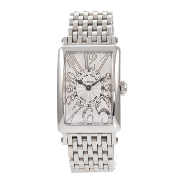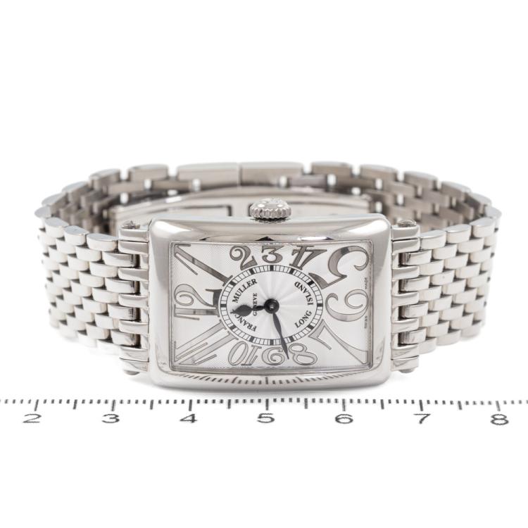 Franck Muller Long Island stainless steel quartz ladies watch. Silver dial, approximate case diameter: 33mm x 23mm, wrist size: 17cm, Swiss made. Ref# 902QZREL. With Franck Muller stainless steel bracelet and clasp. With Certificate of Authenticity, Undated Franck Muller Certificate of Origin & Warranty and Franck Muller box. 3 month FSA warranty. (Pre-owned)