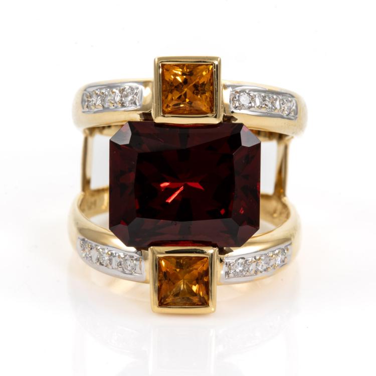 Garnet, Citrine and Diamond Ring