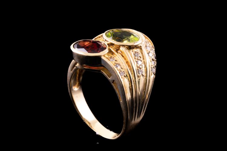 Garnet, Peridot and Diamond Ring
