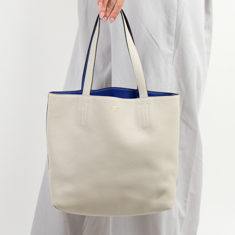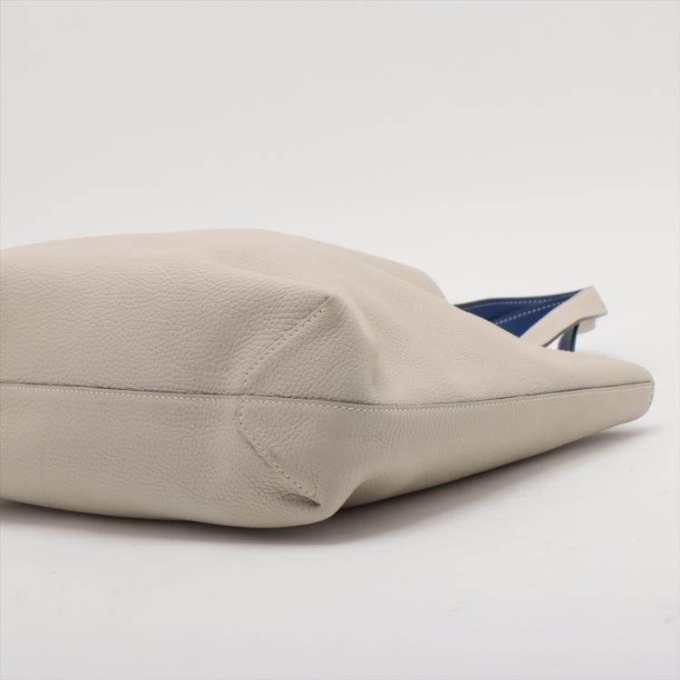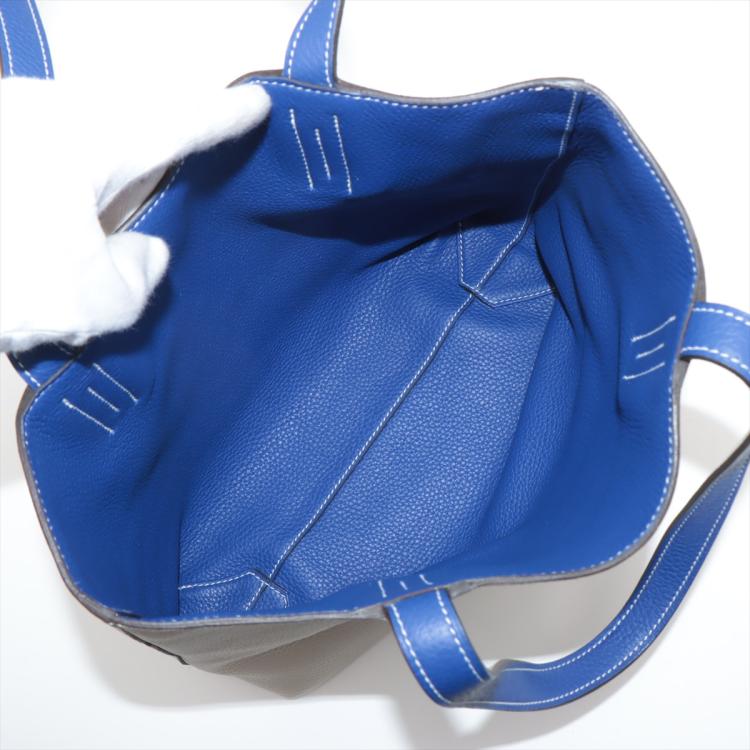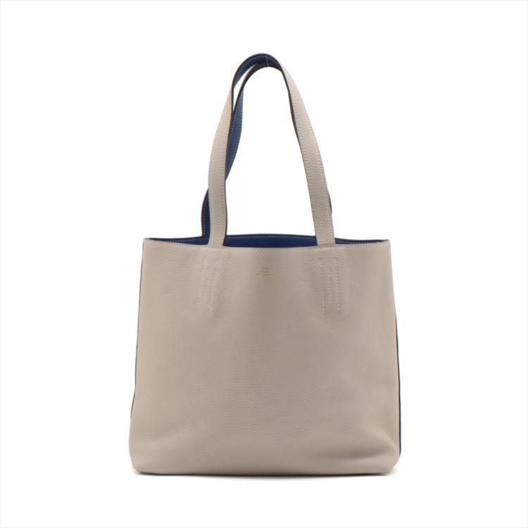 Hermes Double Sens 28 reversible tote in Taurillon Clemence leather (A stamp, circa: 2017). Featuring double leather handles, white stitches, the bag is reversible with one side Beton and the reverse side Blue Electric colour. Approximate dimensions: 28cm(L) x 27cm(H) x 10cm(D), 20cm handle drop. Accompanied by a Hermes dust bag. With Entrupy Certificate of Authenticity. (Pre-owned)