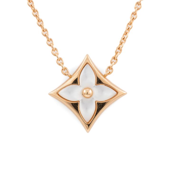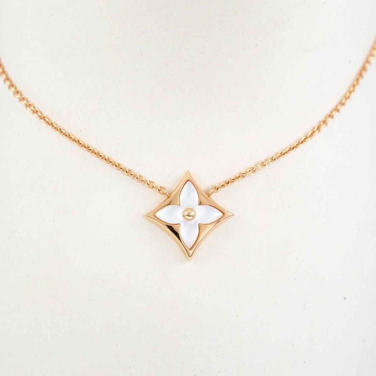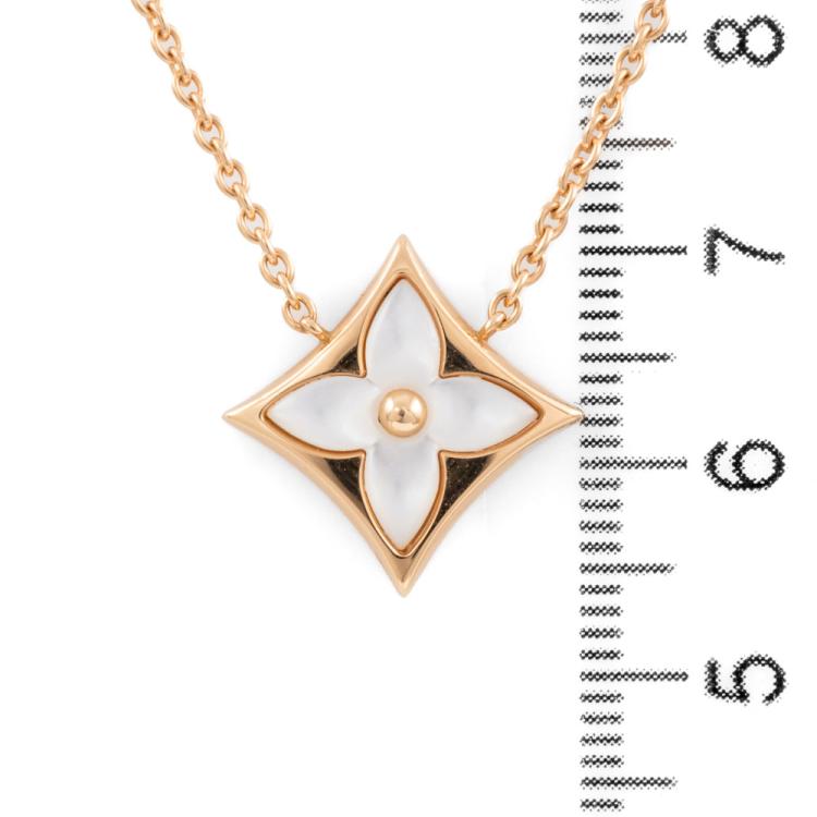 Louis Vuitton Colour Blossom Star necklace with Mother of Pearl. Motif size: 17.1x 17.1mm. 18ct rose gold attached with 18ct rose gold chain. Maximum length: 41.5cm. Made in France. Weight: 6.2g. With Louis Vuitton box and shopping bag. (Pre-owned)