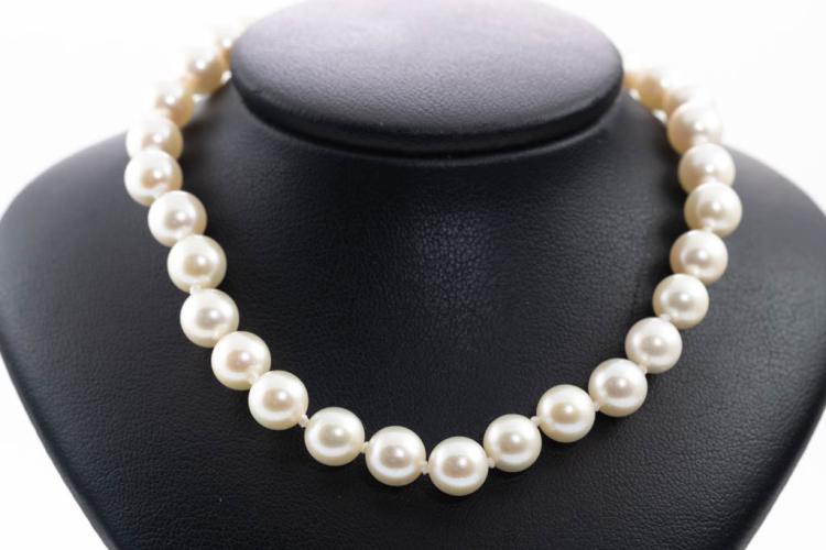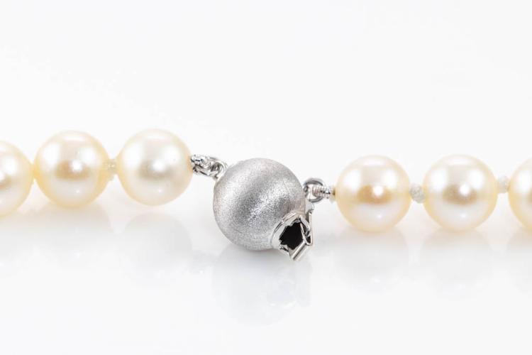 Pearl necklace with 53 Akoya Pearl of 7.9mm-7.5mm. 14ct white gold ball clasp. Length: 47cm. Weight: 36.2g. (Pre-owned)