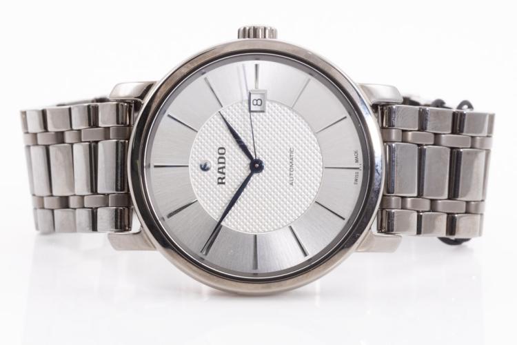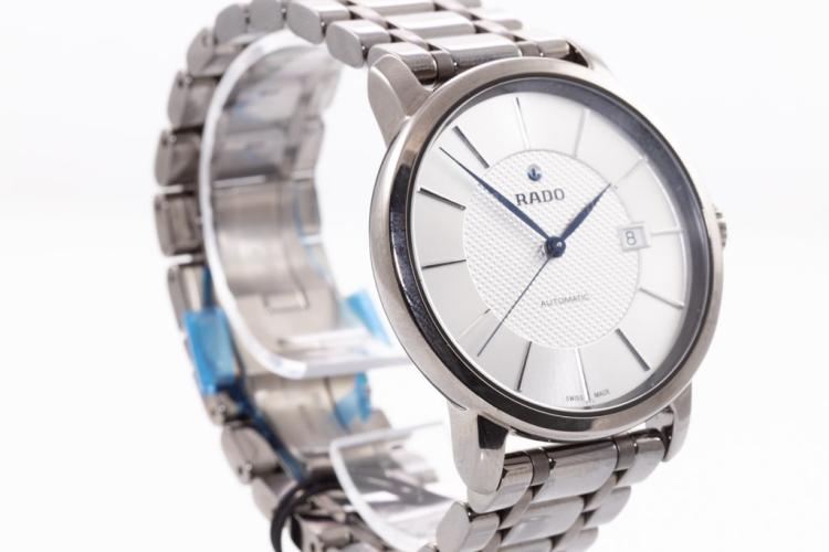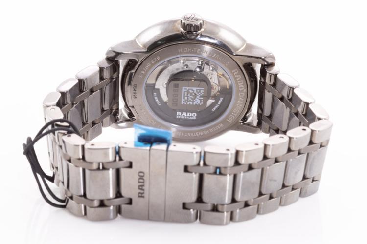 Rado Diamaster XL ceramic automatic mens watch. Silver dial, date, case diameter: 41mm, wrist size: 18cm, Swiss made. Ref# R14074132. With Rado ceramic bracelet and clasp. With Rado 2-Year International Warranty Card and Rado case. Rado warranty applies. (As New, note: minor scratches on case and light wear on bracelet due to being display stock)