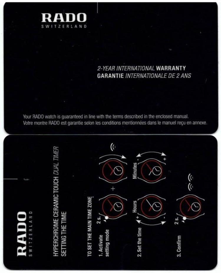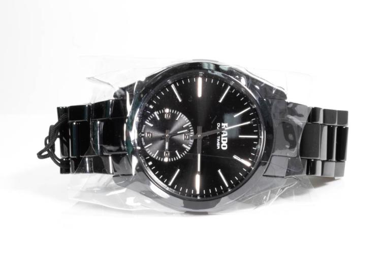 Rado Hyperchrome Dual Timer XL Touch ceramic quartz mens watch. Black dial, case diameter: 42mm, wrist size: 19cm, Swiss made. Ref# R32114152. With Rado ceramic bracelet and clasp. With Rado International Warranty card and Rado box. Rado 2 year warranty applies. (As New, Note: minor scratches on case possible due to being display stock)