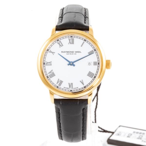 Raymond Weil Toccata stainless steel and yellow gold PVD plated quartz ladies watch. White dial, date, case diameter: 29mm, strap length: 18.5cm, Swiss made. Ref# 5985-PC-00359. With Raymond Weil black leather strap and buckle. With Raymond Weil Guarantee card and Raymond Weil box. 12 month FSA warranty (As new, Note: case is on original wrap)