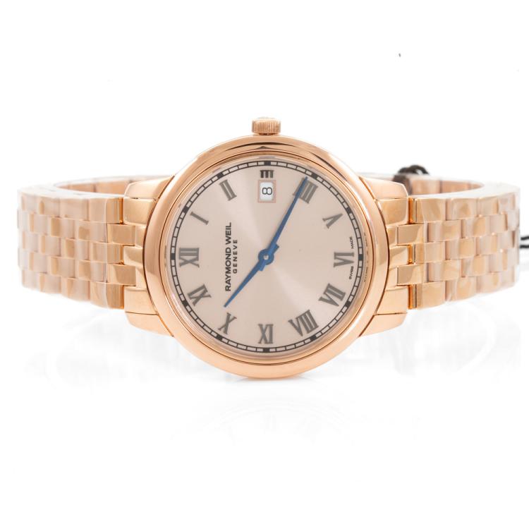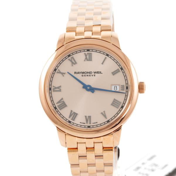 Raymond Weil Toccata rose gold PVD plated with stainless steel quartz ladies watch. Rose gold dial, date, case diameter: 34mm, wrist size: 17.5cm, Swiss made. Ref# 5385-P5-00859. With Raymond Weil rose gold PVD plated bracelet and clasp. With Raymond Weil Guarantee card and Raymond Weil box. 12 month FSA warranty (As new, Note: case and bracelet on original wrapping)