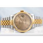 Rolex Oyster Perpetual Datejust 18ct yellow gold and stainless steel automatic mens watch. Gold dial, date, case diameter: 36mm, wrist size: 19.5cm, Swiss made. Ref# 16233. Circa: 1996. With Rolex two tone Jubilee bracelet and clasp. With Certificate of Authenticity, Rolex Guarantee Certificate dated 19/10/1998 and Rolex box with Rolex gift bag. 3 month FSA warranty (Pre-owned)