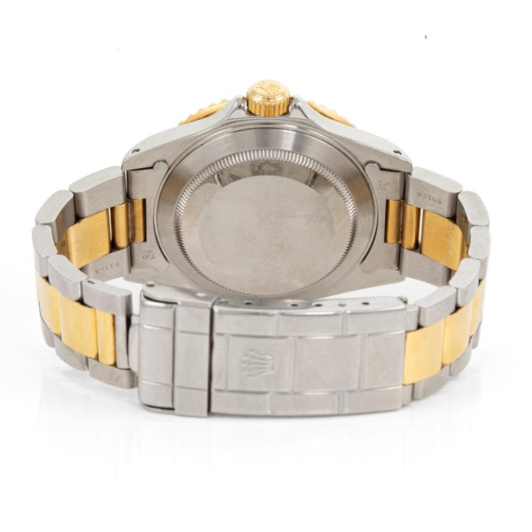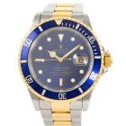 Rolex Oyster Perpetual Submariner Date 18ct yellow gold and stainless steel mens watch. Blue dial, date, case diameter: 40mm, wrist size: 17.5cm, Swiss made. Ref# 16613. Circa: 1993. With Rolex two-tone Oyster bracelet and clasp. With Certificate of Authenticity and Rolex box. 3 month FSA warranty (Pre-owned)