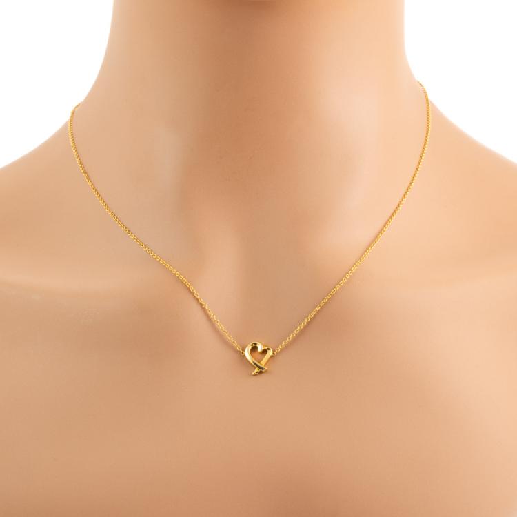 Tiffany & Co. Paloma Picasso Loving Heart Necklace. 18ct yellow gold with Tiffany & Co 18ct yellow gold, length of necklace 46cm. Item dimensions: 9.9mm - 8.0mm. Weight: 2.5g. With Tiffany & Co box. (Pre-owned)