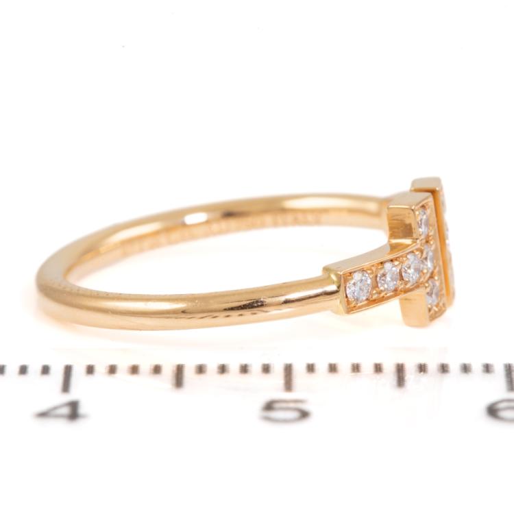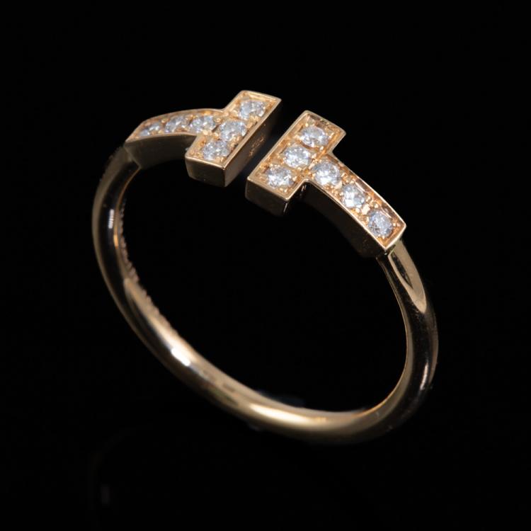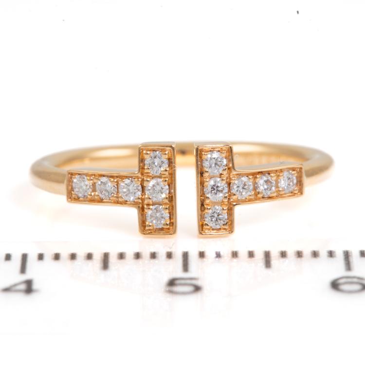 Tiffany & Co. T Wire Diamond ring with 12 round Natural Diamonds totalling 0.13cts. 18ct rose gold. Made in Italy. Ring size K½ - ring resizing is not recommended. Weight: 2.6g. (Pre-owned)