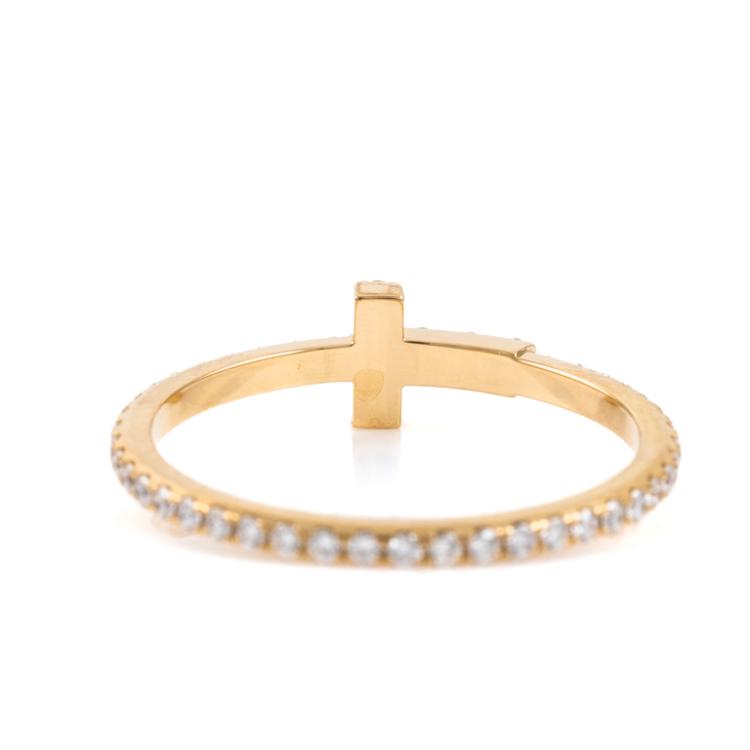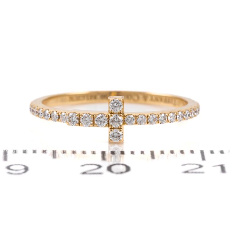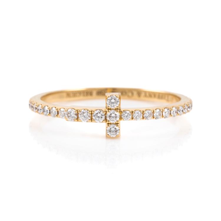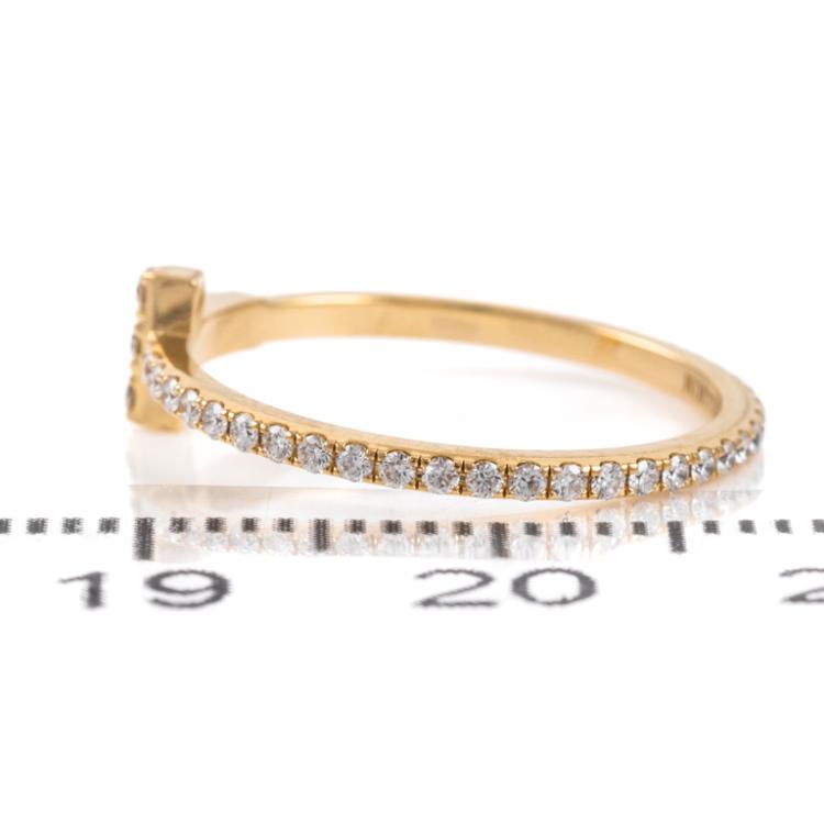 Tiffany & Co. T Wire Diamond ring with Natural Diamonds totalling approximately 0.20cts. 18ct yellow gold. Ring size I - ring resizing is not recommended. Weight: 1.1g. With Tiffany & Co. box. (Pre-owned)