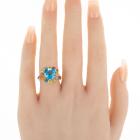 Topaz and Sapphire Ring with heart shape Natural blue Topaz of 4.32ct and surrounding round Natural multi-coloured Sapphires totalling 1.07cts. 18ct white gold. Ring size L. Band width: 2.7mm - 2.3mm. Weight: 6.4g. (Pre-owned)