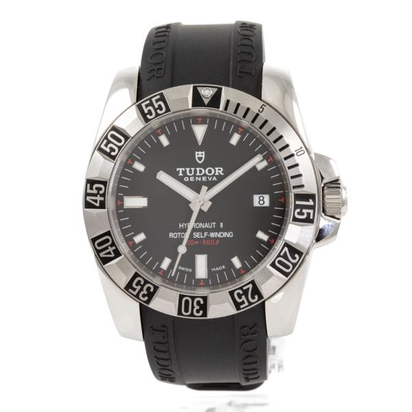 Tudor Hydronaut II Sport stainless steel automatic mens watch. Black dial, date, case diameter: 41mm, adjustable max wrist size: 18cm, Swiss made. Ref# 20040. With Tudor black rubber strap and clasp. With Certificate of Authenticity, Tudor International Guarantee card dated 29/11/2014 and Tudor box. 3 month FSA warranty (Pre-owned)