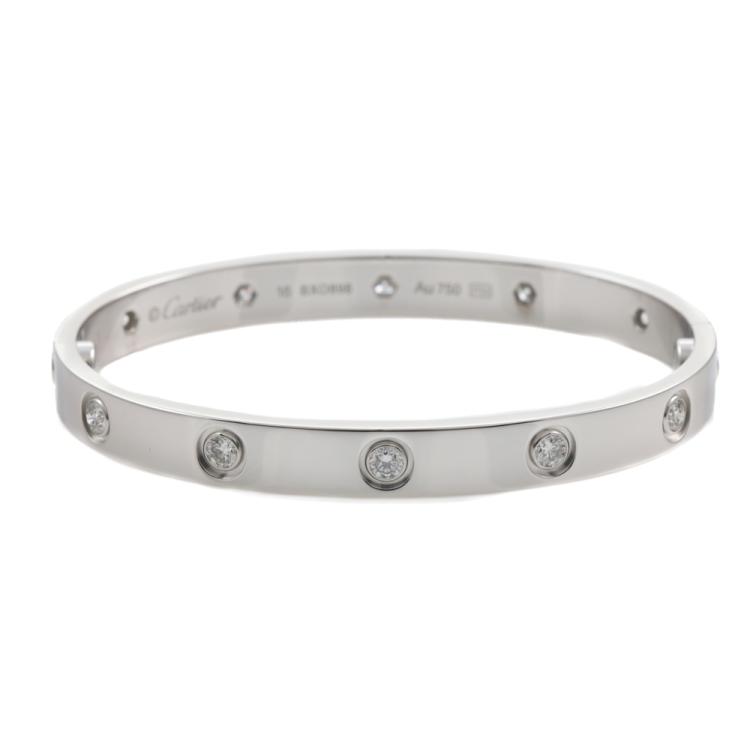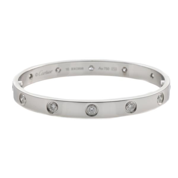 Cartier Love bracelet with 10 round Natural Diamonds totalling 0.96ct (Estimated grading: F VS). 18ct white gold. Width: 6.1mm. Cartier stamped size 16cm. Weight: 31.1g. With screwdriver inside Cartier box. With certificate #419145. (Pre-owned)
