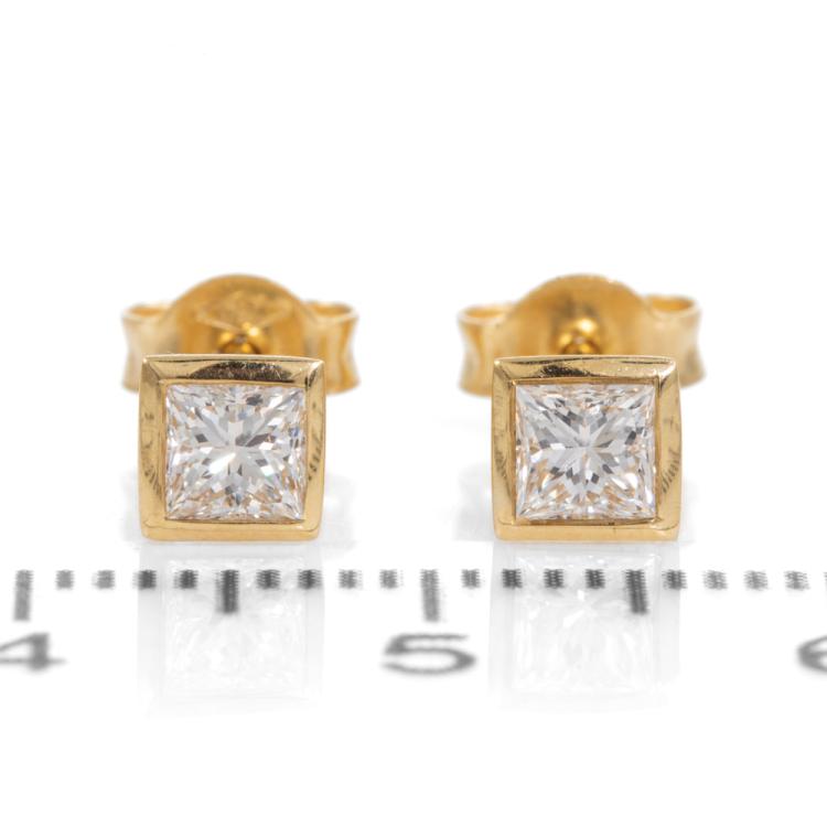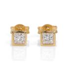 Diamond stud earrings with 2 princess cut Natural Diamonds totalling 0.50cts (Estimated grading: H-I SI). 18ct yellow gold. Weight: 1.4g. (As New)