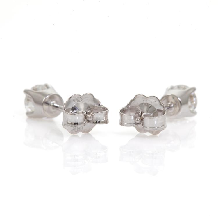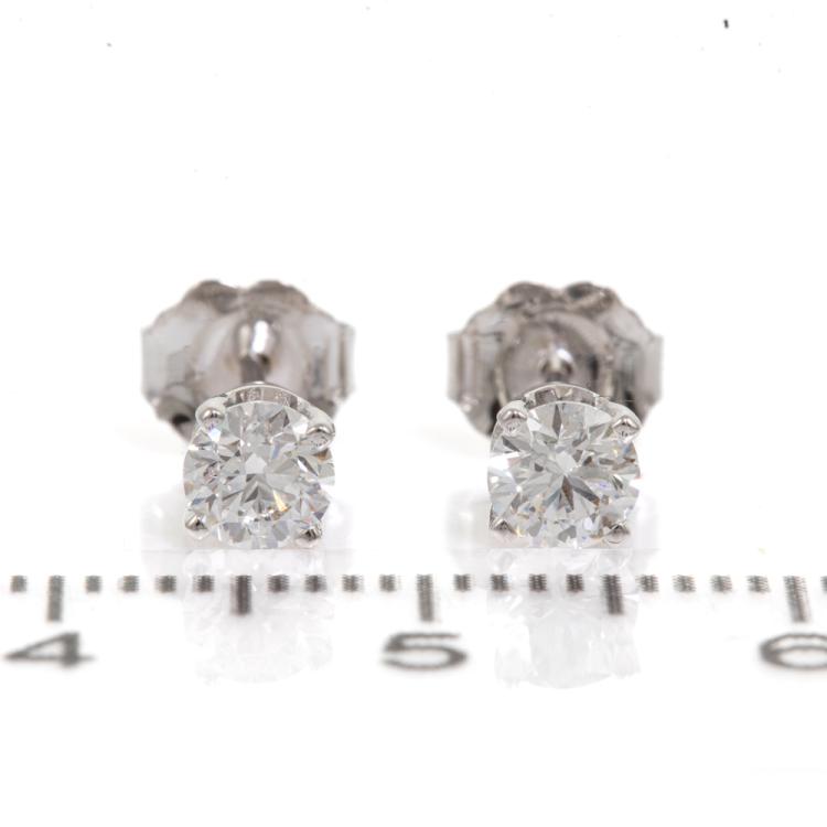 Diamond stud earrings with 2 round brilliant cut Natural Diamonds totalling 0.60cts (both with GIA Summary Reports graded as D VS1 #2486149394, 6485132304). 18ct white gold. Weight: 1.1g (New)