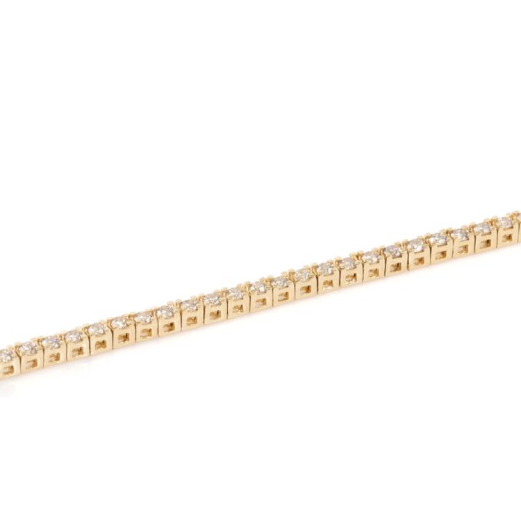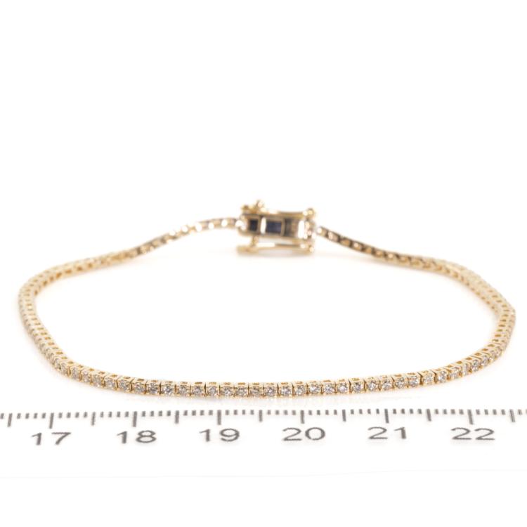 Diamond tennis bracelet with 102 round natural Diamonds totalling 0.99cts (Estimated grading: H-I SI). 14ct yellow gold. Length: 18cm. Weight: 4.6g. (New)