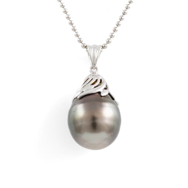 Pearl pendant with ringed drop shape Tahitian Pearl of 14.6mm. Platinum 900 with maximum 43cm Platinum 850 chain. Weight: 12.8g. (Pre-owned)