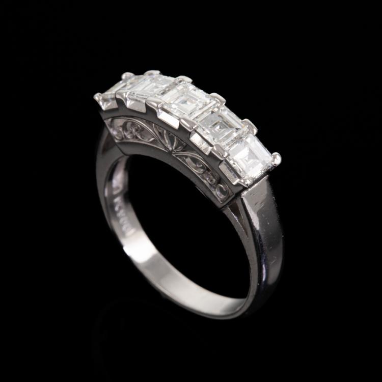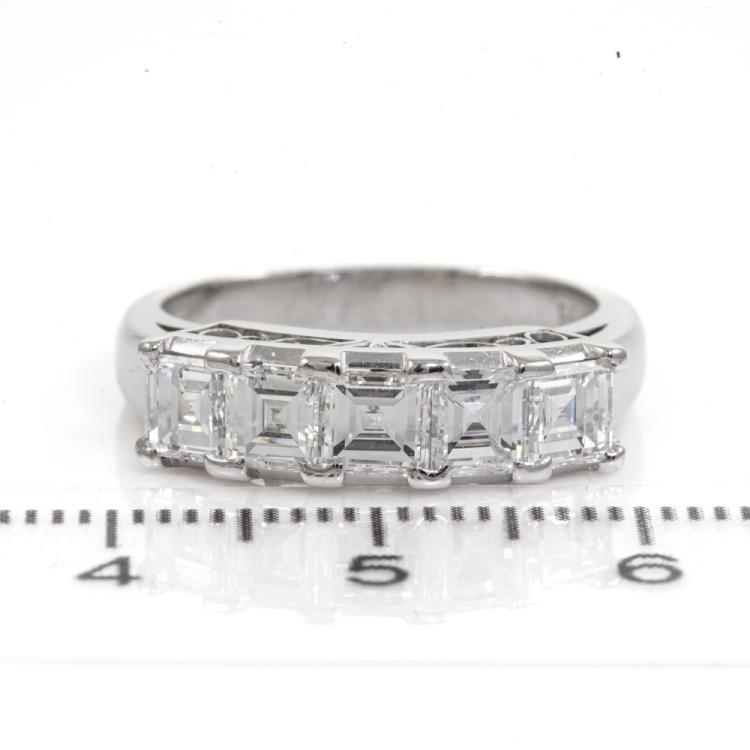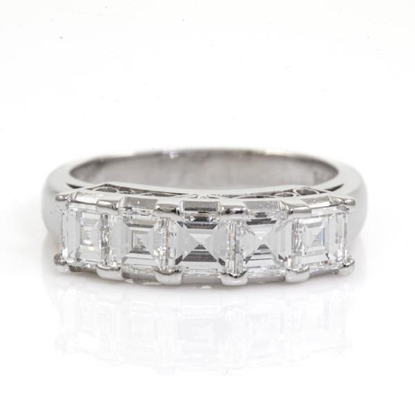 Diamond Eternity ring with 5 square cut natural Diamond totalling 1.68ct (Estimated grading: G VS-SI2). Platinum 900. Ring size M. Band width: 4.0m - 2.88mm. Weight: 7.3g. (Pre-owned).