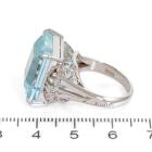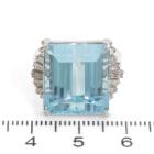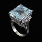 Aquamarine and Diamond ring with emerald cut Natural Aquamarine of 18.26ct and round & baguette cut Natural Diamonds totalling 0.51cts (Estimated grading: G-H SI). Platinum 900. Ring size M. Band width: 2.8mm - 4.4mm. Weight: 12.7g. With Certificate #418452. (Pre-owned)