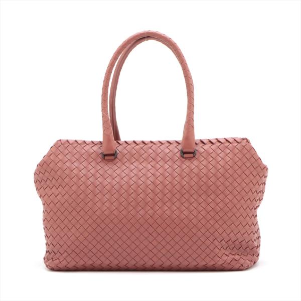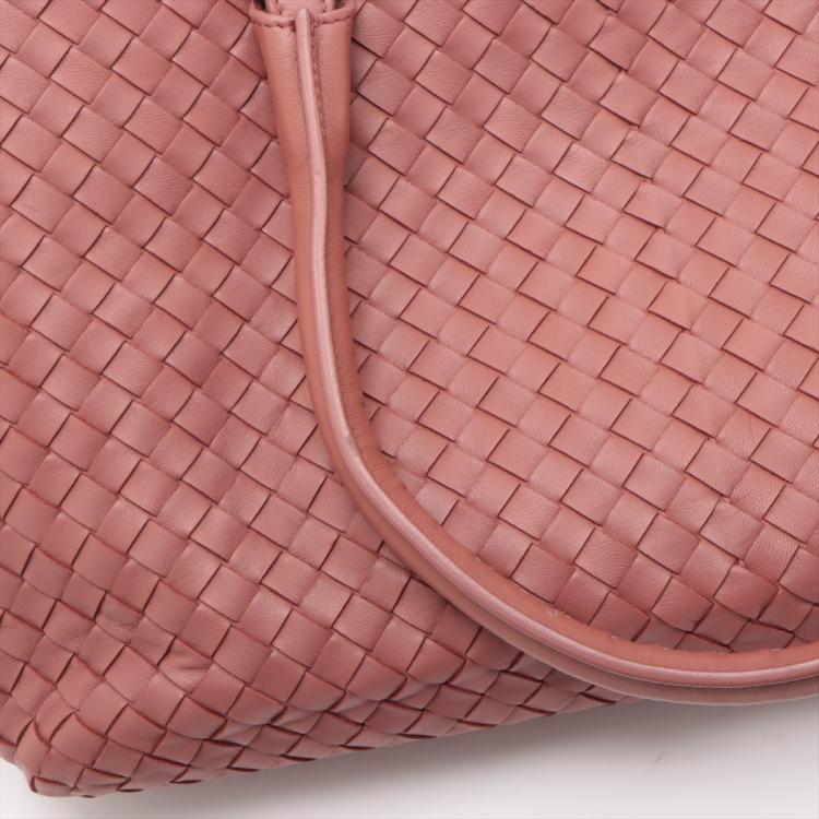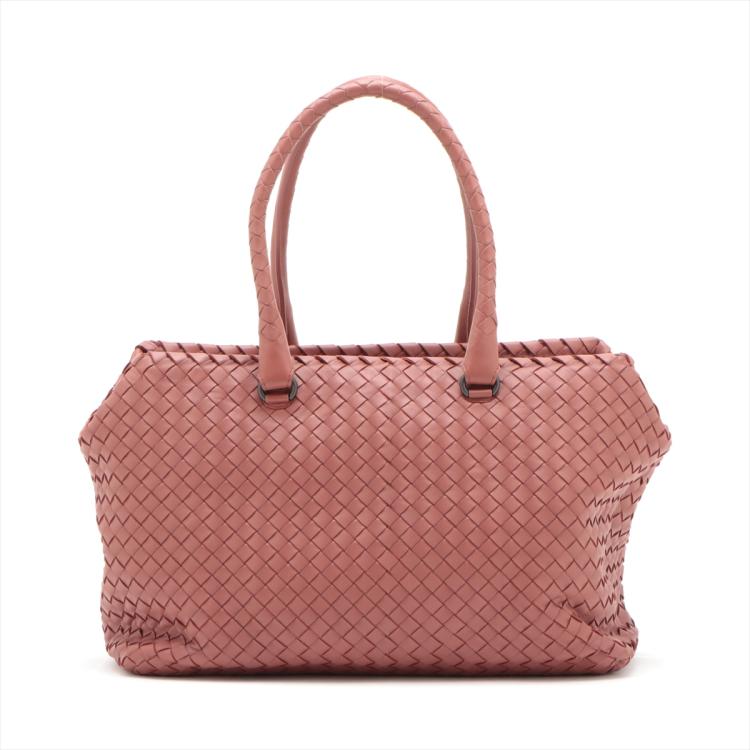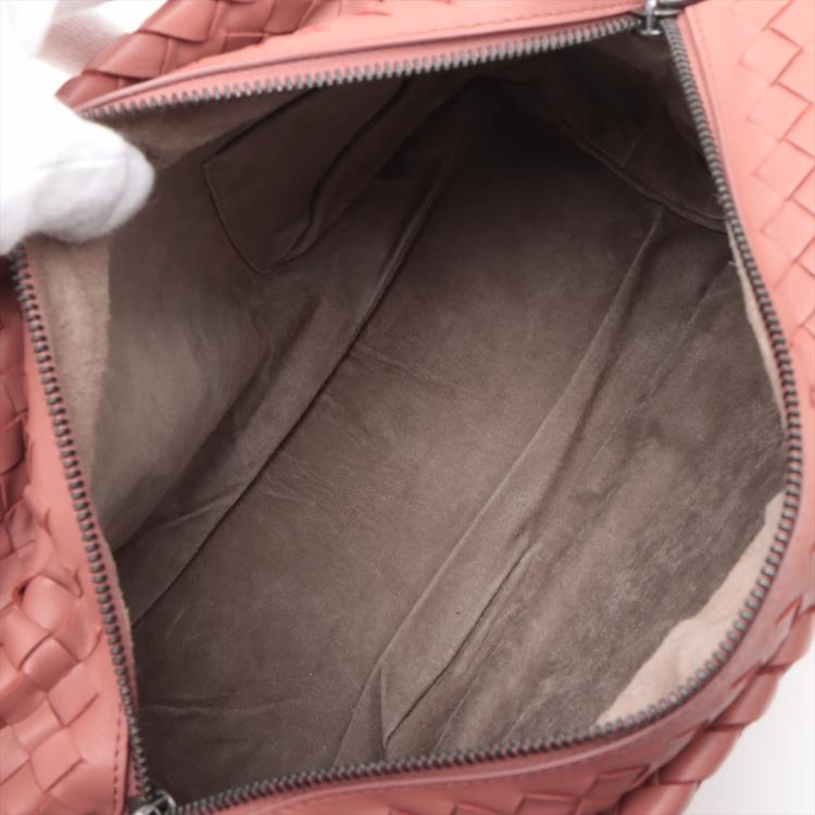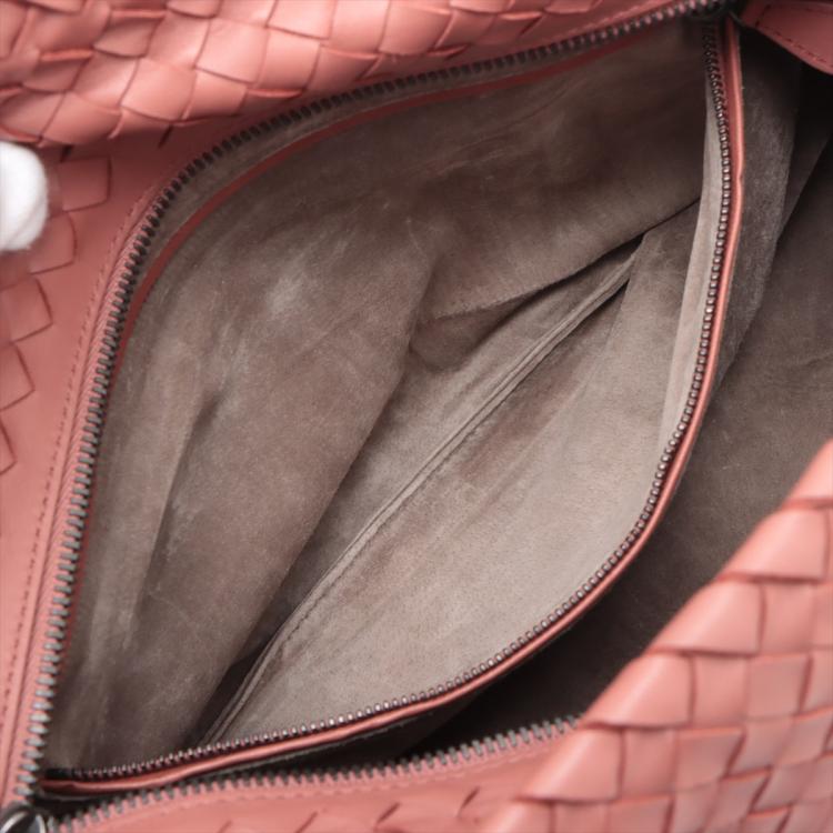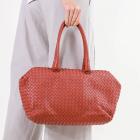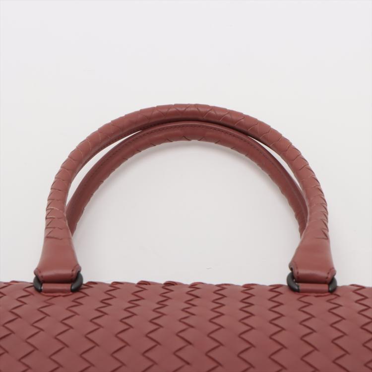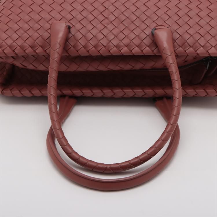Bottega Veneta Large satchel in woven Brique Nappa leather. Featuring matte black hardware and double rolled top handles. The zipper top opens to a light brown suede lining interior with zipper and patch pockets. Approximate dimensions: 33.5cm(L) x 22.5cm(W) x 14.5cm(D), handle drop 20.5cm. Accompanied by Bottega Veneta dustbag and mirror. With Entrupy Certificate of Authenticity. (Pre-owned)