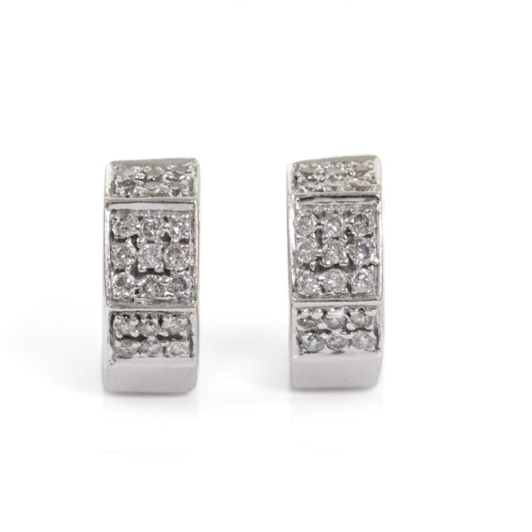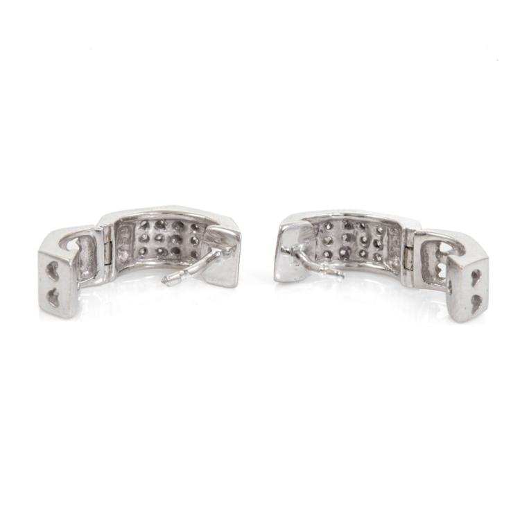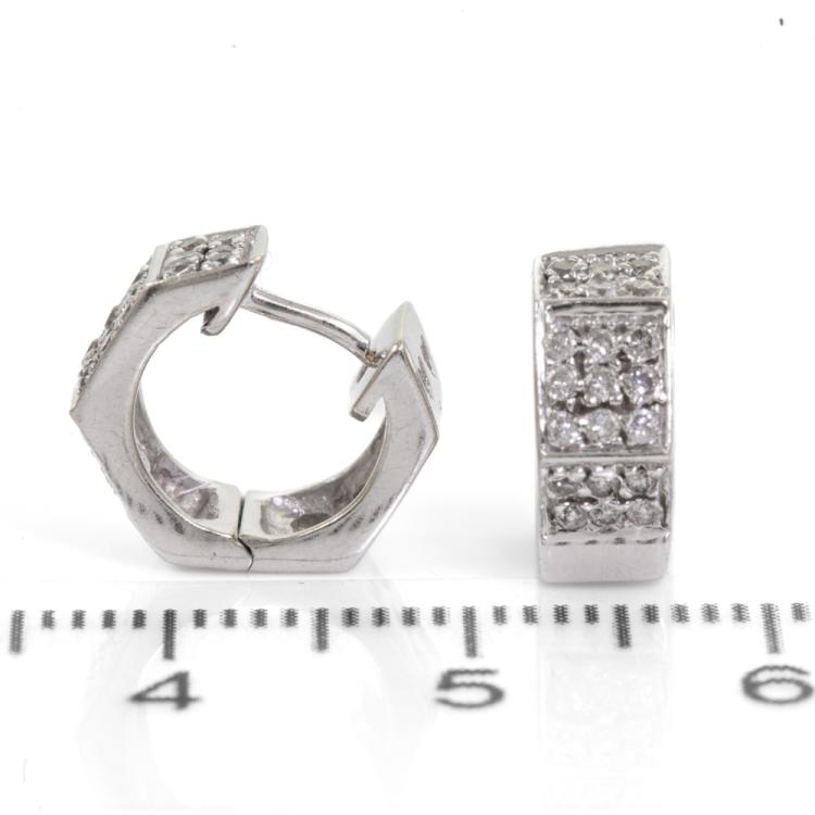 Diamond huggie earrings with round Natural Diamonds totalling approximately 0.60cts (Estimated grading: H SI). 18ct white gold. Weight: 4.1g. (Pre-owned)
