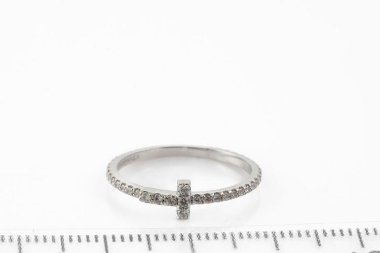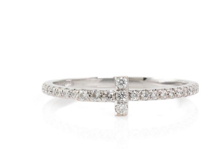 Tiffany & Co Tiffany T Diamond Wire band ring with round Diamonds totalling 0.20ct. 18ct white gold. Ring size K 1/2, - ring resizing is not recommended. Weight: 1.2g. (Pre-owned)
