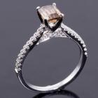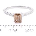 Diamond ring with centre emerald cut Natural Diamond of 1.01ct (with GIA report graded as Fancy Orange-Brown Even #6187029395, FSA estimated clarity: P1) and round Natural Diamonds totalling approximately 0.30cts (Estimated grading: G-H SI). 18ct white gold. Ring size L - ring resizing is not recommended. Weight: 2.7g. (Pre-owned)